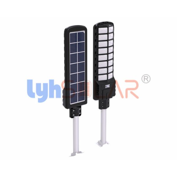 This 18W solar street light is an original design with global patented product that secures the customers' market. The integrated design combines the solar panel, battery and light source together, consolidating them into a small package making installation easy. The lamp housing materials are ABS and PC with UV-protection and corrosion-resistance for outdoor lighting applications and IP65 Waterproof protection for any weather.